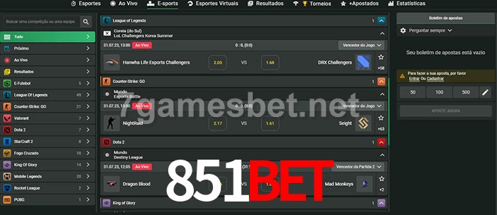 O 851bet oferece uma grande seleção de opções de apostas em e-sports com probabilidades competitivas